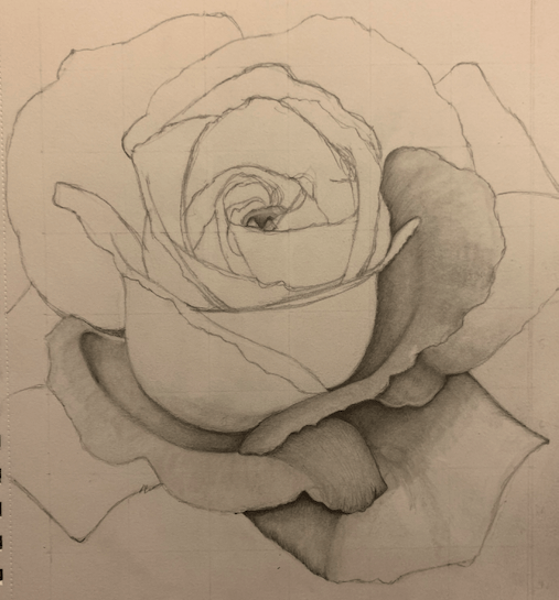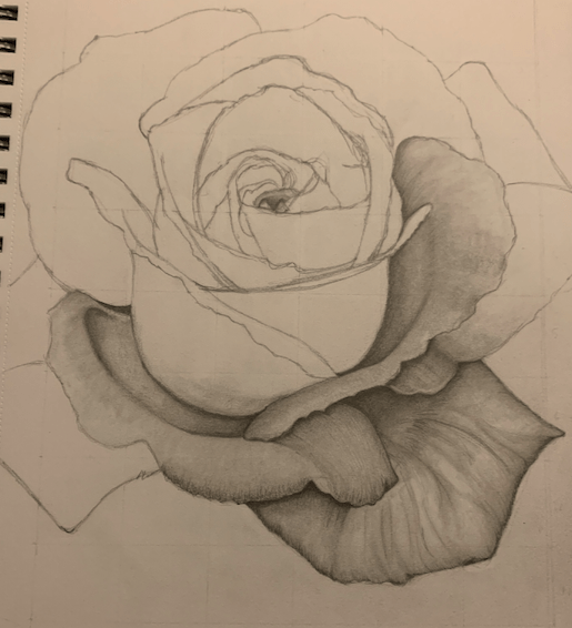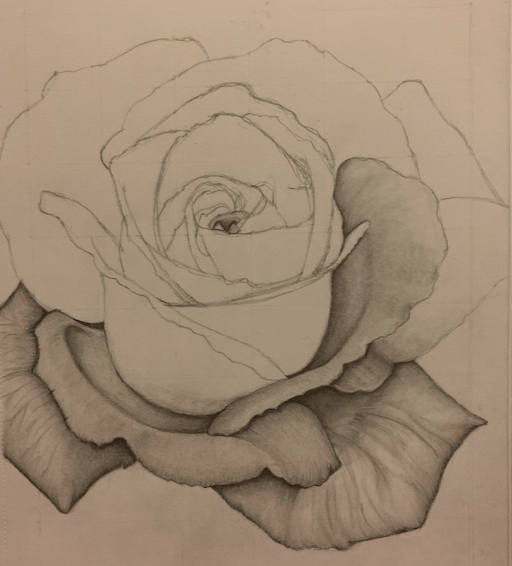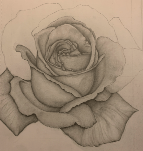 I’m really pleased with how it has turned out, especially as I have never drawn a rose before. As always, there is room for improvement, for example, some of the line work on the larger petals. I’m happy that the shading isn’t dark and that I am constantly aware that I should always begin my shading lightly so that I can build up the darkness of the shades. I enjoyed this project and will definitely draw more flowers, but perhaps add something else to the picture as well.
